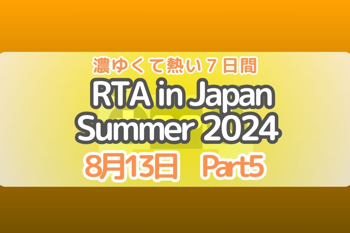今回は、「8月9日から15日まで」行われるRTA/チャリティイベントの「RTAinJapan Summer2024 」のゲームと走者情報をまとめた記事(五日目:8月13日)です。